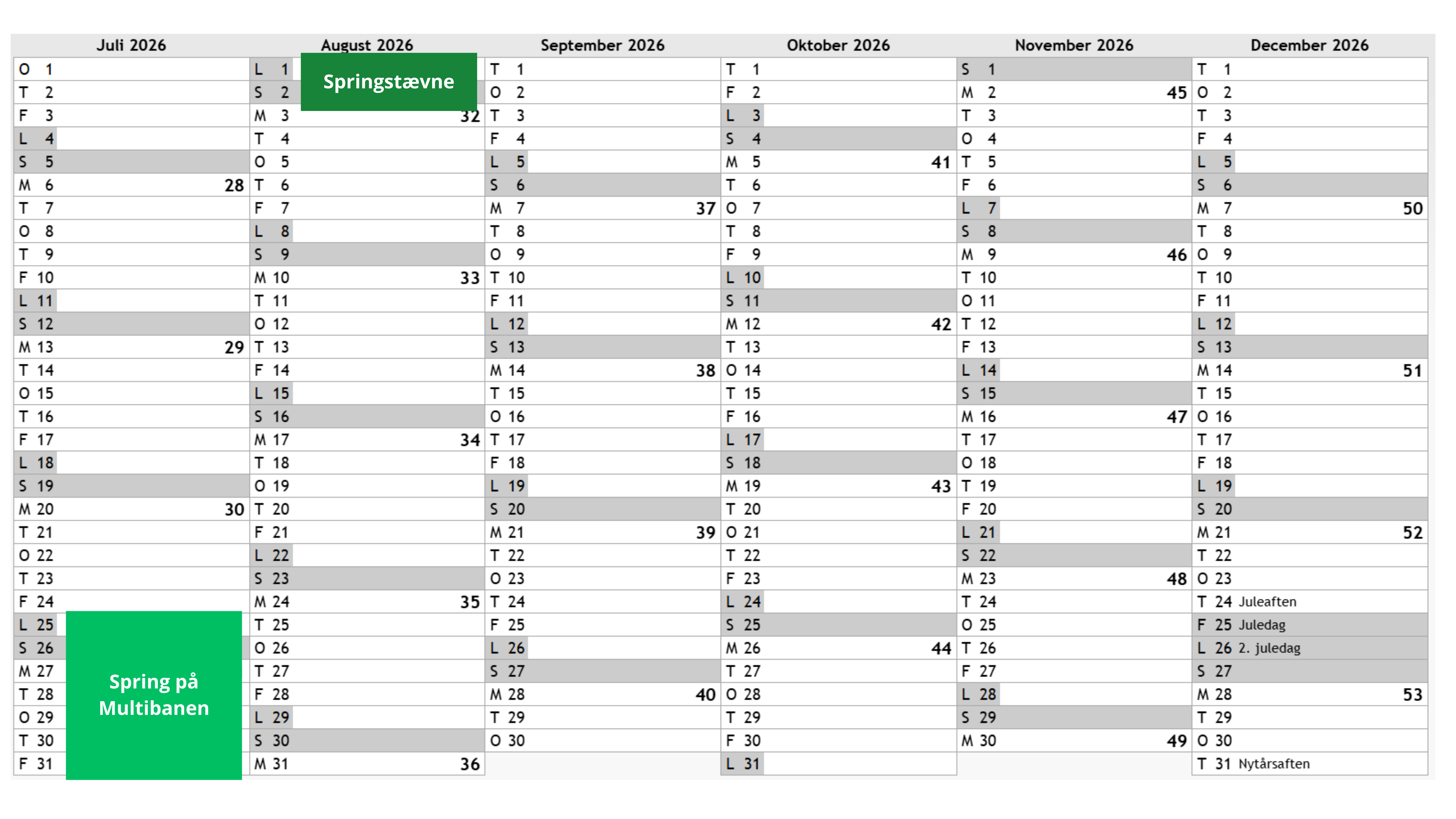 VI gør vores bedste for at kalenderne opdateres hurtigst muligt når der kommer nyt/ændringer.